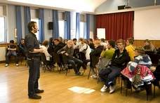 Ungdomskontaktene holder foredrag i forbindelse med gjennomføring av programmet venn1.no.Hvordan kan jeg være åpen, uten å utlevere meg selv? Denne faglige utfordringen, har vært en av diskusjontemaene under samlingen i Neiden. -Vi har på denne samlingen lagt vekt på finpussing av ungdomskontaktenes foredrag, styrking av samhold og fellesfølelse, selvutvikling og selvfølelse, samt gi ungdommene teoretisk innsikt i pedagogisk metode, forteller Bjørn Smith-Hald. -Det er ofte bare små justeringer som skal til, påpeker han, som fremholder videre at det er viktig å gi ungdomskontaktene en god følelse i forhold til egen historie.